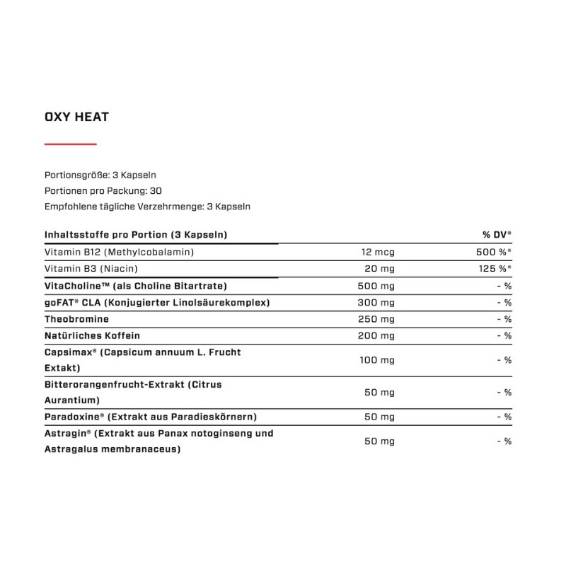VAST Oxy Heat jungia unikalių termogeninių ingredientų kompleksą, kuris stimuliuoja medžiagų apykaitą, skatina riebalų deginimą ir didina fizinį pajėgumą intensyviose treniruotėse